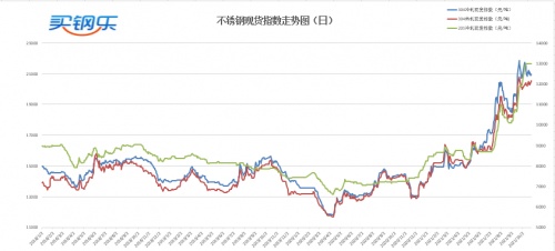 今日不锈钢市场304冷轧价格还是保持平稳,只是临近月末总归资金紧张成交会受影响。无锡市场304热轧和201价格有所松动略有回落。304冷轧不锈钢现货接单虽仍保持20700-20800元/吨,但期货仓单20300元/吨报价仍会拖累市场价格。期货交易所的政策性干预对拉抬上涨的炒作行为开展了有效打击,既然上涨无望干脆就向下波动,双焦期货以及部分化工品种再现跌停,碳钢期货也出现3-5%的下跌。