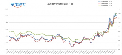 今日不锈钢期货再次调高手续费的政策打压下,304冷轧期货终于也没有抗住周边煤炭和碳钢同样的命运,走出一波杀跌行情,不锈钢期货主力合约最低下跌1475元/吨。304冷轧不锈钢现货报价受其影响纷纷下调价格出货,20200-20300元/吨成为全天主流成交价,有接现货期单的报价19800元/吨也有成交。在下午的一波反弹后,现货报价又重回20500元/吨。